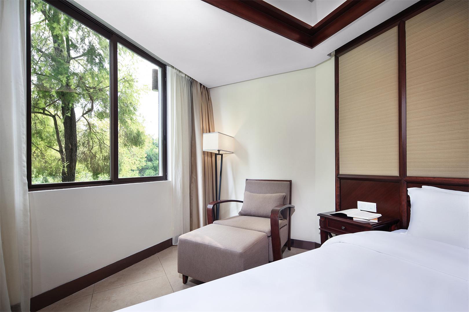 The suite has a reasonable spatial layout, divided into a comfortable bedroom and a spacious living room. The bedroom is equipped with an extra - large luxury bed, paired with high - quality bedding that is soft and skin - friendly, ensuring you a peaceful sleep. The living room is cozily furnished with a sofa, coffee table, etc., providing you with a pleasant relaxation space. In addition, the suite is exquisitely decorated, integrating the unique local cultural elements of Yangshuo. From decorative ornaments to color matching, every detail reveals the local style, allowing you to feel the strong regional cultural atmosphere while enjoying comfort.