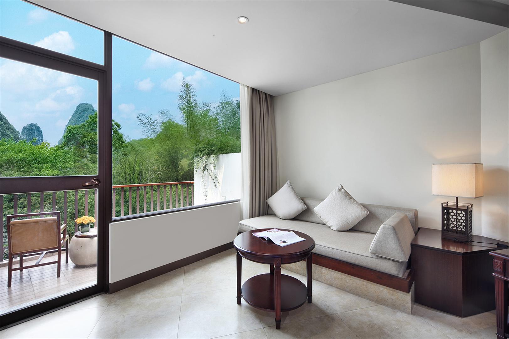 The Yulong River View Twin - Bed Room creates a comfortable and distinctive accommodation experience for you. The most prominent feature of this room type is its charming view of the Yulong River. Through the window, you can enjoy the picturesque scenery of the Yulong River. The gently flowing river, along with the green willows and mountains on the banks, form a peaceful and leisurely landscape painting.