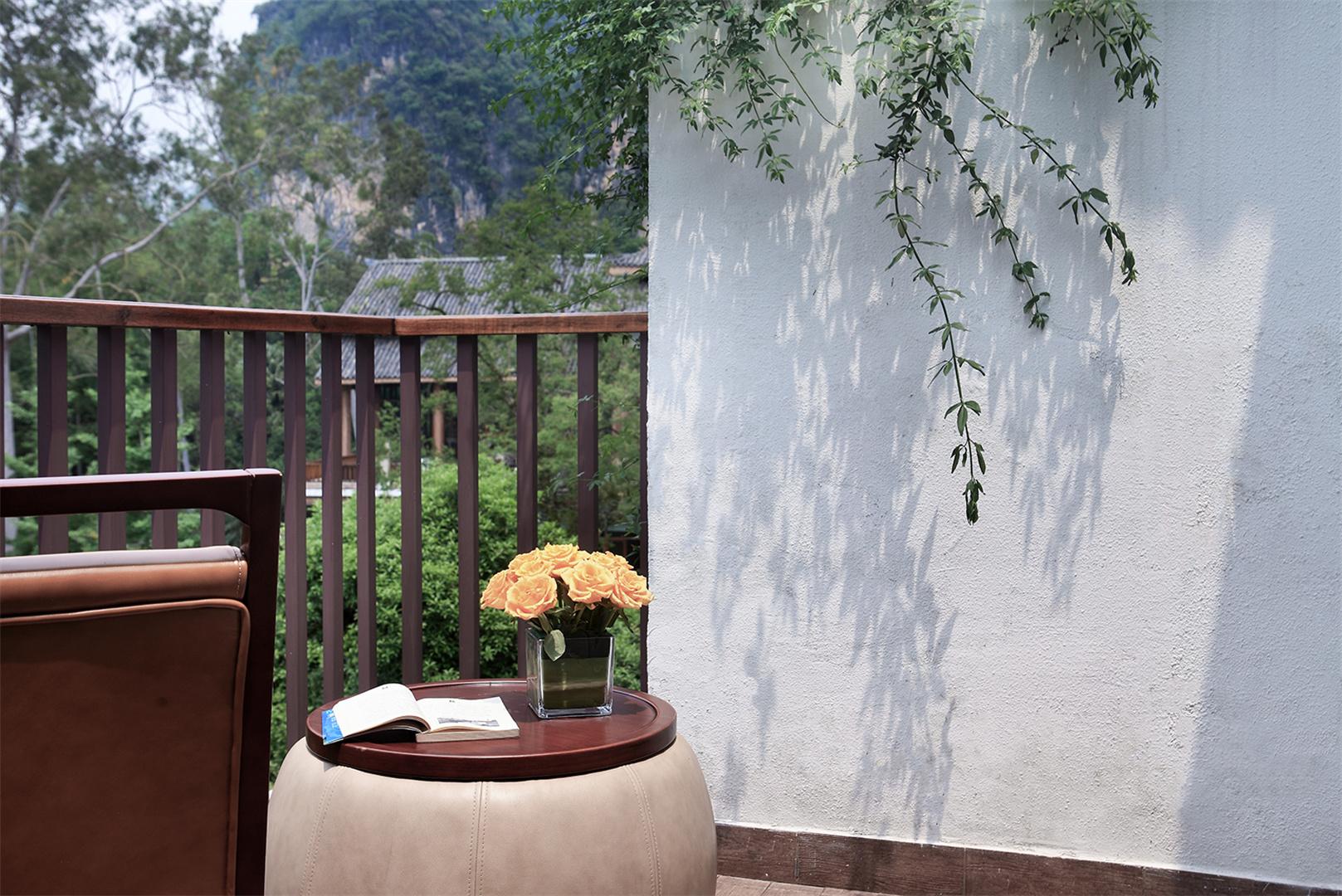 The room is cozily and elegantly decorated. It is furnished with two single beds. The beds are soft and comfortable, and the beddings are made of high - quality fabrics, allowing you to fully relax and enjoy a sound sleep. The overall decoration style of the room skillfully combines the local Yangshuo charm with a modern minimalist touch, showing meticulous craftsmanship in every detail.